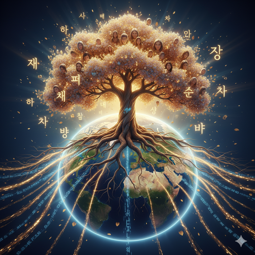 - 설명: 대한민국이라는 '뿌리'가 인류라는 '나무' 전체에 생명력(지식과 정신)을 공급하는 모습을 형상화한 이미지입니다.